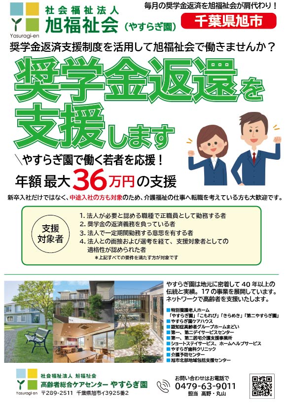 奨学金返還支援制度を活用して旭福祉会で働きませんか?